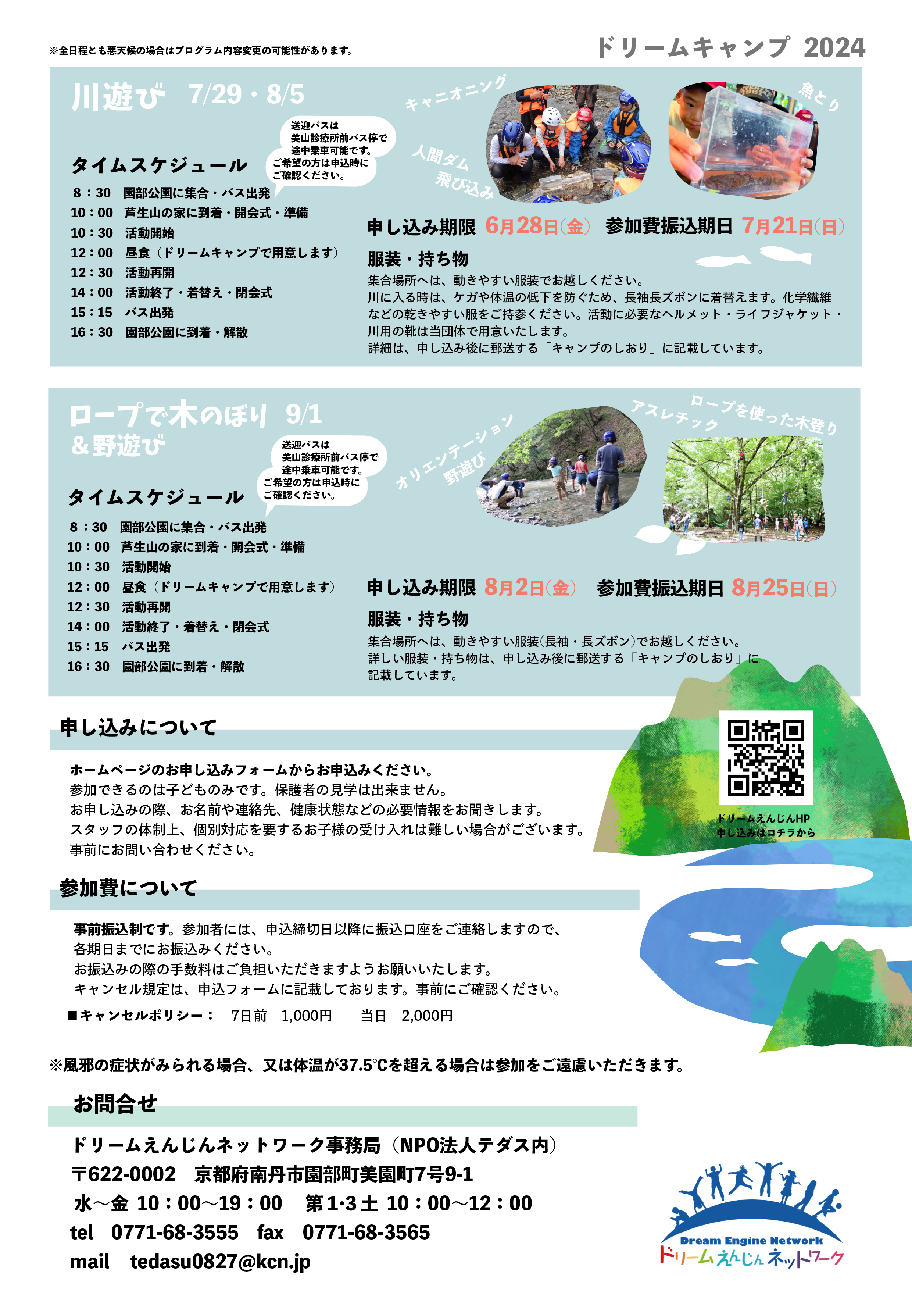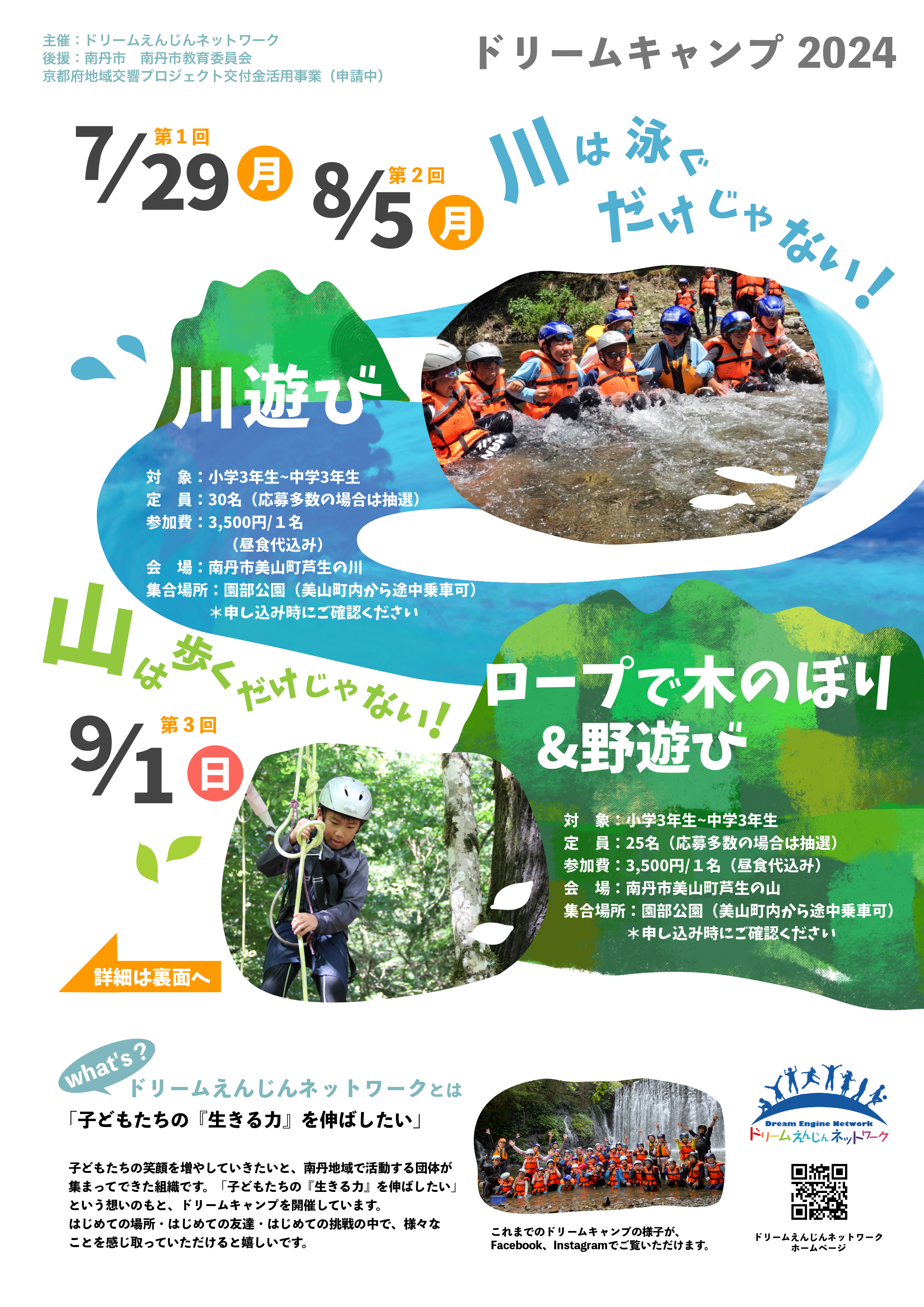 ドリームえんじんネットワーク「ドレームキャンプ2024川遊び/ロープで木のぼり&野遊び」
