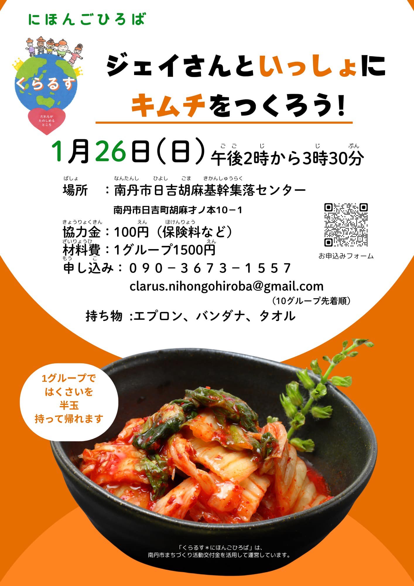 今回のチラ1グランプリは、1位2位共に同票で票が分かれる接戦でした。優勝は鶴ヶ岡振興会「“山里の記憶”伝承教室味噌づくり」と、くらるす「にほんごひろば ジェイさんといっしょにキムチをつくろう!」でした。